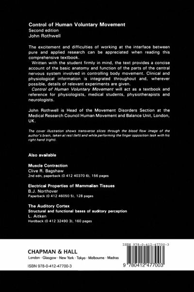 `Control of human voluntary movement is a difficult and even at times obscure subject ... or so I thought before I got round to reading John Rothwell's excellent pocket-sized textbook on the subject. ... The subject matter could too easily lapse into introspection, but Rothwell maintains the reader's interest by including excellent diagrams and illustrations and a fair amount of pathophysiology.' Nursing Times `The author provides a comprehensive, unbiased review of current experimental evidence and theories.' Physiotherapy