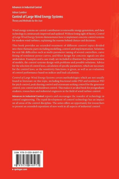 Control of Large Wind Energy Systems covers methodologies which are not usually found in literature on this topic, including fractional order PID and nonlinear PID for pitch control, peak shaving control and extremum seeking control for the generator control, yaw control and shutdown control. This makes it an ideal book for postgraduate students, researchers and industrial engineers in the field of wind turbine control.