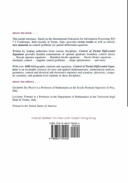 This useful reference provides recent results as well as entirely new material on control problems for partial differential equations.