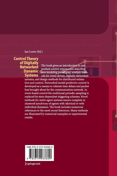 The book gives an introduction to networked control systems and describes new modeling paradigms, analysis methods for event-driven, digitally networked systems, and design methods for distributed estimation and control. Networked model predictive control is developed as a means to tolerate time delays and packet loss brought about by the communication network. In event-based control the traditional periodic sampling is replaced by state-dependent triggering schemes. Novel methods for multi-agent systems ensure complete or clustered synchrony of agents with identical or with individual dynamics.