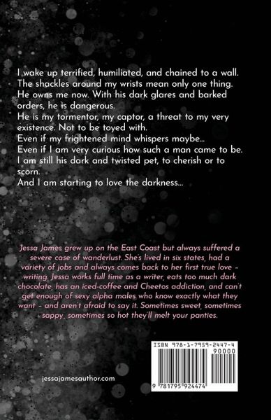 I wake up terrified, humiliated, and chained to a wall. The shackles around my wrists mean only one thing. He owns me now. With his dark glares and barked orders, he is dangerous. He is my tormentor, my captor, a threat to my very existence. Not to be toyed with. Even if my frightened mind whispers maybe... Even if I am very curious how such a man came to be. I am still his dark and twisted pet, to cherish or to scorn. And I am starting to love the darkness...