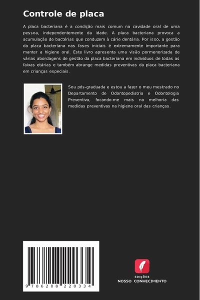 A placa bacteriana é a condição mais comum na cavidade oral de uma pessoa, independentemente da idade. A placa bacteriana provoca a acumulação de bactérias que conduzem à cárie dentária. Por isso, a gestão da placa bacteriana nas fases iniciais é extremamente importante para manter a higiene oral. Este livro apresenta uma visão pormenorizada de várias abordagens de gestão da placa bacteriana em indivíduos de todas as faixas etárias e também abrange medidas preventivas da placa bacteriana em crianças especiais.