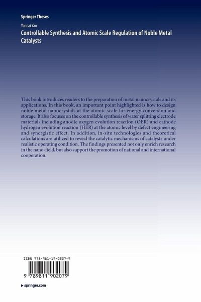 This book introduces readers to the preparation of metal nanocrystals and its applications. In this book, an important point highlighted is how to design noble metal nanocrystals at the atomic scale for energy conversion and storage. It also focuses on the controllable synthesis of water splitting electrode materials including anodic oxygen evolution reaction (OER) and cathode hydrogen evolution reaction (HER) at the atomic level by defect engineering and synergistic effect. In addition, in-situ technologies and theoretical calculations are utilized to reveal the catalytic mechanisms of catalysts under realistic operating condition. The findings presented not only enrich research in the nano-field, but also support the promotion of national and international cooperation.