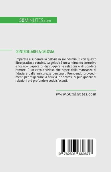Imparate a superare la gelosia in soli 50 minuti con questo libro pratico e conciso. La gelosia è un sentimento corrosivo e tossico, capace di distruggere le relazioni e di uccidere l'amore. È un circolo vizioso che nasce dalla mancanza di fiducia e dalle insicurezze personali. Prendendo provvedimenti per migliorare la fiducia in se stessi, si può godere di relazioni più profonde e soddisfacenti. In questo libro scoprirete le cause della gelosia, tra cui la scarsa fiducia in se stessi e la mancanza di fiducia negli altri. Include anche consigli utili per superare la gelosia e fidarsi del partner, dandovi gli strumenti per bandire definitivamente il mostro dagli occhi verdi!