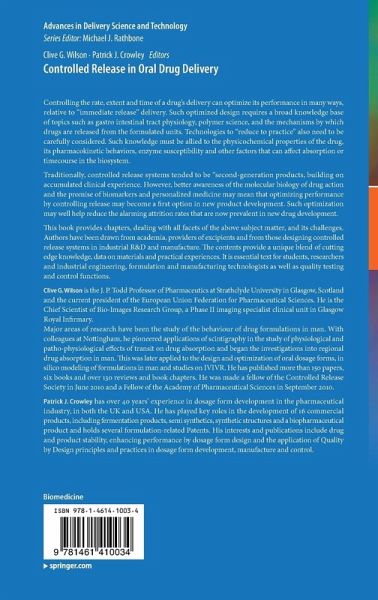 Controlled Release in Oral Drug Delivery provides chapters, dealing with all facets of the above subject matter, and its challenges. Authors have been drawn from academia, providers of excipients and from those designing controlled release systems in industrial R&D and manufacture. The contents provide a unique blend of cutting edge knowledge, data on materials and practical experiences. It is essential text for students, researchers and industrial engineering, formulation and manufacturing technologists as well as quality testing and control functions.