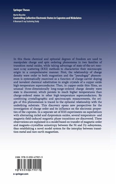 In this thesis chemical and epitaxial degrees of freedom are used to manipulate charge and spin ordering phenomena in two families of transition metal oxides, while taking advantage of state-of-the-art resonant x-ray scattering (RXS) methods to characterize their microscopic origin in a comprehensive manner. First, the relationship of charge density wave order to both magnetism and the "pseudogap" phenomenon is systematically examined as a function of charge-carrier doping and isovalent chemical substitution in single crystals of a copper oxide high-temperature superconductor. Then, in copper oxide thin films, an unusual three-dimensionally long-range-ordered charge density wave state is discovered, which persists to much higher temperatures than charge-ordered states in other high-temperature superconductors. By combining crystallographic and spectroscopic measurements, the origin of this phenomenon is traced to the epitaxial relationship with the underlying substrate. This discoveryopens new perspectives for the investigation of charge order and its influence on the electronic properties of the cuprates. In a separate set of RXS experiments on superlattices with alternating nickel and dysprosium oxides, several temperature- and magnetic-field-induced magnetic phase transitions are discovered. These observations are explained in a model based on transfer of magnetic order and magneto-crystalline anisotropy between the Ni and Dy subsystems, thus establishing a novel model system for the interplay between transition-metal and rare-earth magnetism.