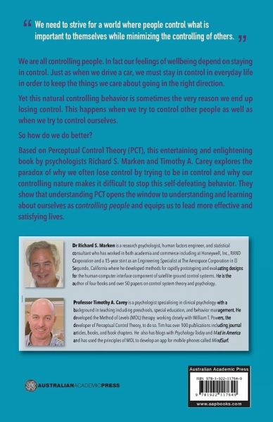 Based on Perceptual Control Theory (PCT), this entertaining book explores the paradox of why we often lose control by trying to be in control and why our controlling nature makes it difficult to stop this self-defeating behavior. Understanding PCT opens the window to understanding and learning about ourselves as controlling people and equips us to lead more effective and satisfying lives.