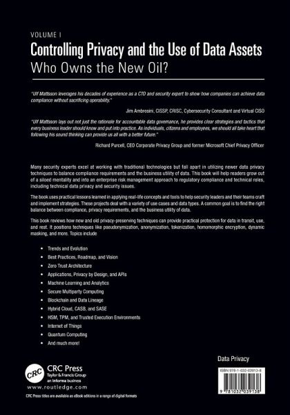 "With the growing number of regulations around privacy and consumers' growing awareness of and demand for privacy, it's clear that privacy needs to be a priority for every organization. Controlling Privacy and the Use of Data Assets by Ulf Mattsson provides a holistic perspective on data protection and the technology that can support privacy. This book is a must-read for anyone responsible for privacy or curious about privacy-preserving applications and platforms."