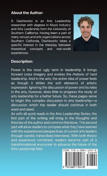 Power is the most ugly term in leadership. It brings forward crass imagery and evokes the rhetoric of hard leadership. And in the arts, the entire idea of power feels as though it dirties the soft elements of artistic expression. Ignoring the discussion of power and its roles in the arts, however, does little to progress the study of arts leadership for a better future. So, these pages serve to begin this complex discussion in arts leadership-a discussion which the reader should continue in both word and deed. As with all quick reads in the Arts Leadership Series, the first part of the writing will bring in the thoughts and theories of the author and common literature. The second part will allow readers to compare what they have learned with the experienced perspectives of current arts leaders through candid, transcribed interviews. With both theory and experience combined, readers become part of a transformational encounter to advance the future of the Arts Leadership field.