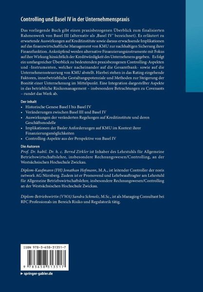 Das vorliegende Buch gibt einen praxisbezogenen Überblick zum finalisierten Rahmenwerk von Basel III (alternativ als 'Basel IV' bezeichnet). Es erläutert zu erwartende Auswirkungen auf Kreditinstitute sowie daraus erwachsende Implikationen auf das finanzwirtschaftliche Management von KMU zur nachhaltigen Sicherung ihrer Finanzfunktion. Anknüpfend werden alternative Finanzierungsinstrumente mit Fokus auf ihre Wirkung hinsichtlich der Kreditwürdigkeit des Unternehmens gegeben. Es folgt ein umfangreicher Überblick zu bedeutenden praxisbezogenen Controlling-Aspekten und -Instrumenten, welcher nacheinander auf die Gesamtbank- sowie auf die Unternehmenssteuerung von KMU abstellt. Hierbei stehen in das Rating eingehende Faktoren, innerbetriebliche Gestaltungspotenziale und Methoden zur Steigerung der Bonität einer Unternehmung im Mittelpunkt. Eine Integration dargestellter Aspekte in das betriebliche Risikomanagement - insbesondere Betrachtungen zu Covenants - rundet das Werk ab.