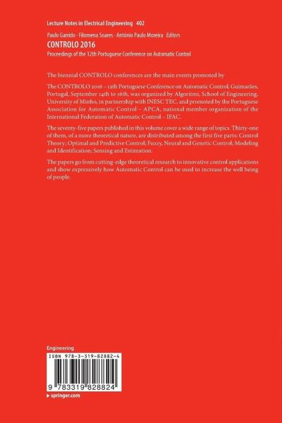 The CONTROLO 2016 - 12th Portuguese Conference on Automatic Control, Guimarães, Portugal, September 14th to 16th, was organized by Algoritmi, School of Engineering, University of Minho, in partnership with INESC TEC, and promoted by the Portuguese Association for Automatic Control - APCA, national member organization of the International Federation of Automatic Control - IFAC.
