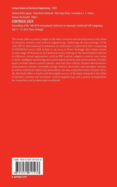 This book offers a perfect insight of the latest research and developments in the fields of dynamic systems and control engineering. Gathering the proceedings of the 16th APCA International Conference on Automatic Control and Soft Computing (CONTROLO 2024), held on July 17-19, 2024, in Porto, Portugal, this volume covers a wide range of theoretical and practical issues relating to the development and use of different control approaches, such as PID control, adaptive control, non-linear control, intelligent monitoring and control based on fuzzy and neural systems. Further topics include robust control systems, and real time control. Sensors and actuators, measurement systems, renewable energy systems, aeronautic and aerospace systems, as well as industrial control and automation, are also comprehensively covered. All in all, this book offers a timely and thoroughly survey of the latest research in the fields of dynamic systems and automatic control engineering, and a source ofinspiration for researchers and professionals worldwide.