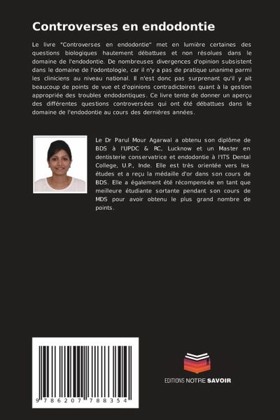 Le livre "Controverses en endodontie" met en lumière certaines des questions biologiques hautement débattues et non résolues dans le domaine de l'endodontie. De nombreuses divergences d'opinion subsistent dans le domaine de l'odontologie, car il n'y a pas de pratique unanime parmi les cliniciens au niveau national. Il n'est donc pas surprenant qu'il y ait beaucoup de points de vue et d'opinions contradictoires quant à la gestion appropriée des troubles endodontiques. Ce livre tente de donner un aperçu des différentes questions controversées qui ont été débattues dans le domaine de l'endodontie au cours des dernières années.