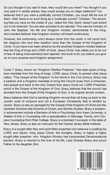So you thought if you said it nicer, they would like you more? You thought if you only said it in certain places, they would accept you on major platforms? You believed that if you were a politically correct Christian, you could still be one of them. Well, there is no such thing as a "politically correct" Christian. The anoint- ing that you have on the inside of you, called the Holy Spirit, doesn't just anoint you to be received. You are also anointed to be rejected. This was the ministry of John the Baptizer. His life and Kingdom ministry demonstrate to the Kingdom-minded believer that Kingdom ministry will breed controversy. However, the controversy won't always come from the world- it will come from the religious who love their tradition more than the Gospel of the Kingdom of Christ. If you have ever been afraid to be the anointed Kingdom-minded believer that the King of kings and LORD of lords, Jesus Christ, has called you to be out of fear of being misunderstood and rejected, this book is for you before you give up on your purpose and Kingdom assignment.