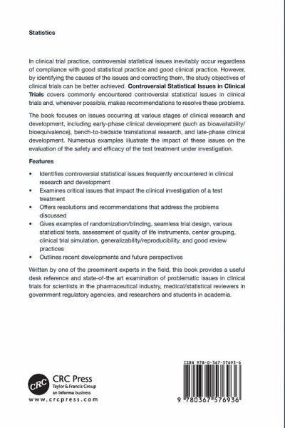 In clinical trial practice, controversial statistical issues inevitably occur regardless of the compliance with good statistical practice and good clinical practice. But by identifying the causes of the issues and correcting them, the study objectives of clinical trials can be better achieved. Controversial Statistical Issues in Clinical Trials covers commonly encountered controversial statistical issues in clinical trials and, whenever possible, makes recommendations to resolve these problems.