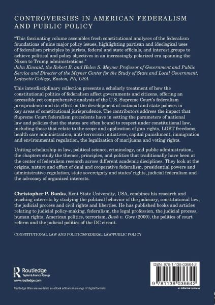 This interdisciplinary collection presents a scholarly treatment of how the constitutional politics of federalism affect governments and citizens, offering an accessible yet comprehensive analysis of the U.S. Supreme Court's federalism jurisprudence and its effect on the development of national and state policies in key areas of constitutional jurisprudence. The contributors address the impact that Supreme Court federalism precedents have in setting the parameters of national law and policies that the states are often bound to respect under constitutional law, including those that relate to the scope and application of gun rights, LGBT freedoms, health care administration, anti-terrorism initiatives, capital punishment, immigration and environmental regulation, the legalization of marijuana and voting rights. Uniting scholarship in law, political science, criminology, and public administration, the chapters study the themes, principles, and politics that traditionally have been at the center of federalism research across different academic disciplines. They look at the origins, nature and effect of dual and cooperative federalism, presidential powers and administrative regulation, state sovereignty and states' rights, judicial federalism and the advocacy of organized interests.