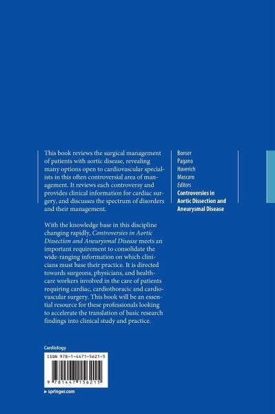 This book reviews the surgical management of patients with aortic disease with detailed discussions about the many options and controversies in this area. It is particularly germane for cardiac surgeons responsible for treating this high-risk cohort of patients. This is an important contribution to the field of aortic surgery. It is current in its presentation of data and techniques and is a valuable contribution to the practice of cardiovascular surgery. (Michael Bates, Doody s Book Reviews, January, 2015)