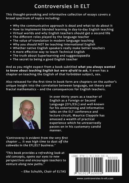This thought-provoking and informative collection of essays covers a broad spectrum of topics including: - Why the communicative approach is dead and what to do about it - How to implement blended learning in day-to-day English teaching - Virtual worlds and why English teachers should get a second life - The different roles played by the language teacher - The value of translation in language teaching - Whether native English speakers really make better teachers - Why you should NOT be teaching International English - A more effective way to teach Technical English - The truth about Superlearning and suggestopaedia - The secret to being a good English teacher - Teaching the language of sex. Also included are chapters on the author's unique insight into the issue of complexity in language teaching as manifested in the correlation between language, set theory and fractal mathematics - and the consequences for learners and teachers of English.