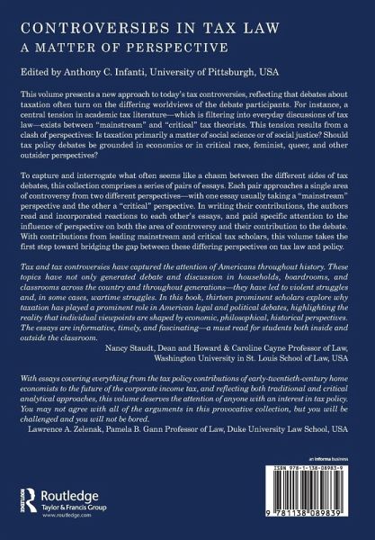 This volume addresses the central tension in debates between 'mainstream' and 'critical' tax theorists which reflects a clash of perspectives: is taxation primarily a matter of social science or of social justice? Should tax policy debates be grounded in economics or in critical race, feminist, queer, and other outsider perspectives? With contributions from leading mainstream and critical tax scholars, this volume takes the first step toward bridging the gap between these differing perspectives on tax law and policy.
