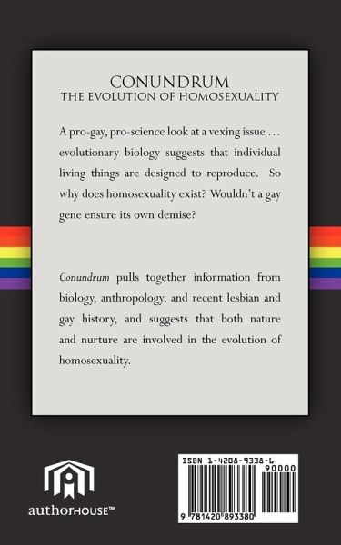 A pro-gay, pro-science look at a vexing issue . evolutionary biology suggests that individual living things are designed to reproduce. So why does homosexuality exist? Wouldn't a gay gene ensure its own demise? Conundrum pulls together information from biology, anthropology, and recent lesbian and gay history, and suggests that both nature and nurture are involved in the evolution of homosexuality.