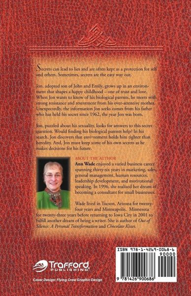 A baby boy, born of a sixteen-year old, is given up to adoption. (A secret kept by the teenager until many years later.) Jon, the adopted baby (documents are sealed) grows up in the loving and safe environment of John and Emily Strutter. Heredity evidences in Jon's physical traits - blue eyes, writing left handed, and a cowlick at his hairline, but environment molds his character - thoughtful, responsible, and dependable. Jon is attracted not only to girls but boys as well and is puzzled why. (A question shared only with a male friend.) Jon seeks to find answers by wanting to know his birth parents but is met with strong resistance from his over-protective mother ("those files are closed forever"). Jon's father reveals information he has kept private for twenty-one years, and Jon's sets a plan to see at least one of his birth parents. Jon takes a summer job two states away, in Nora's city. He gets to know Nora by visiting her frame shop, and Jon believes his true identity remains a secret. As Jon drives home to family and school in Minnesota, he must decide how to live his life. With who and where? His choices lead to more secrets.