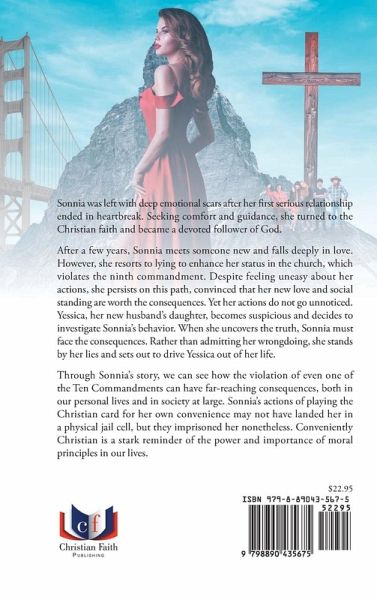 Sonnia was left with deep emotional scars after her first serious relationship ended in heartbreak. Seeking comfort and guidance, she turned to the Christian faith and became a devoted follower of God. After a few years, Sonnia meets someone new and falls deeply in love. However, she resorts to lying to enhance her status in the church, which violates the ninth commandment. Despite feeling uneasy about her actions, she persists on this path, convinced that her new love and social standing are worth the consequences. Yet her actions do not go unnoticed. Yessica, her new husband's daughter, becomes suspicious and decides to investigate Sonnia's behavior. When she uncovers the truth, Sonnia must face the consequences. Rather than admitting her wrongdoing, she stands by her lies and sets out to drive Yessica out of her life. Through Sonnia's story, we can see how the violation of even one of the Ten Commandments can have far-reaching consequences, both in our personal lives and in society at large. Sonnia's actions of playing the Christian card for her own convenience may not have landed her in a physical jail cell, but they imprisoned her nonetheless. Conveniently Christian is a stark reminder of the power and importance of moral principles in our lives.
