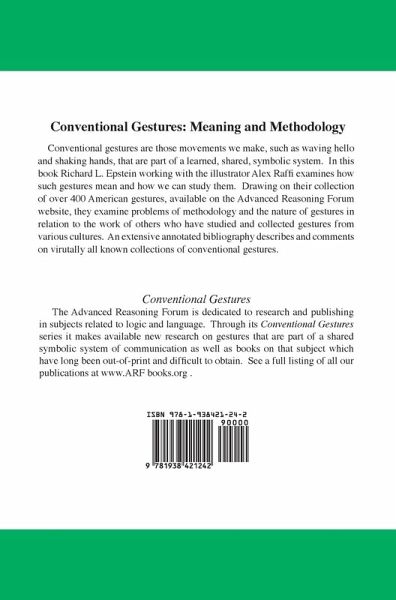 Conventional gestures are those movements we make, such as waving hello and shaking hands, that are part of a learned, shared, symbolic system. In this book Richard L. Epstein working with the illustrator Alex Raffi examines how such gestures mean and how we can study them. Drawing on their collection of over 400 American gestures, available on the Advanced Reasoning Forum website, they examine problems of methodology and the nature of gestures in relation to the work of others who have studied and collected gestures from various cultures. An extensive annotated bibliography describes and comments on virtually all known collections of conventional gestures.