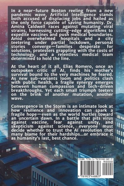 In a near-future Boston reeling from a new pandemic wave, Artificial Intelligence stands both accused of displacing jobs and hailed as the only force capable of saving humanity. Dr. Amina Caldwell races against mutating viral strains, harnessing cutting-edge algorithms to expedite vaccines and push medical boundaries. Amid overwhelmed hospitals and a city teetering under partial lockdown, personal stories converge-families desperate for solutions, protesters grappling with the costs of technology, and a relentless medical team determined to hold the line. At the heart of it all, Elias Romero, once an outspoken critic of AI, finds his mother's survival bound to the very machines he feared. As new sub-variants loom and politics clash with public health, a fragile synergy emerges between human compassion and tech-driven breakthroughs. Yet each small triumph teeters on the brink of another mutation, another wave. Convergence in the Storm is an intimate look at how resilience and innovation can spark a fragile hope-even as the world hurtles toward an uncertain dawn. In a battle that pits virus against vaccine, fear against unity, and skepticism against science, everyone must decide whether to trust the AI revolution that many blame for their hardships...or embrace it as humanity's last, best chance.