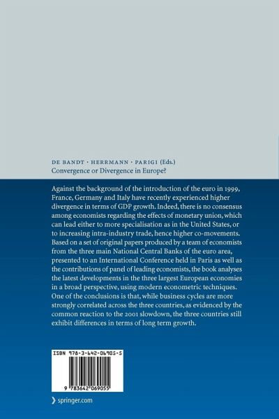 Against the background of the introduction of the euro in 1999, France, Germany and Italy have recently experienced higher divergence in terms of GDP growth. Indeed, there is no consensus among economists regarding the effects of monetary union, which can lead either to more specialisation as in the United States, or to increasing intra-industry trade, hence higher co-movements. Based on a set of original papers produced by a team of economists from the three main National Central Banks of the euro area, presented to an International Conference held in Paris as well as the contributions of panel of leading economists, the book analyses the latest developments in three largest European economies in a broad perspective, using modern econometric techniques. One of the conclusions is that, while business cycles are more strongly correlated across the three countries, as evidenced by the common reaction to the 2001 slowdown, the three countries still exhibit differences in terms of long term growth.