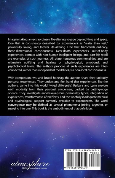 Imagine taking an extraordinary, life-altering voyage beyond time and space. One that is consistently described by experiencers as "realer than real," powerfully loving, and forever life-altering. One that transcends ordinary, three-dimensional consciousness. Near-death experiences, out-of-body experiences, contact with non-human intelligent beings, and past-life recall are examples of such journeys. All share numerous commonalities, and are ultimately uplifting and healing on physiological, emotional, and psychological levels. The authors propose all such experiences are inter-connected, rather than independent modalities, via non-local consciousness. With compassion, wit, and brutal honesty, the authors share their uniquely personal experiences. They understand first hand that experiencers, like the authors, came into this world 'wired differently.' Barbara and Lynn explore each modality from their personal encounters, backed by cutting-edge science. They investigate anomalous-prone personality types, integration of experiences, transformative aftereffects, and the woefully inadequate medical and psychological support currently available to experiencers. The word convergence may be defined as several phenomena joining together, or merging into one. This book is the embodiment of that definition.