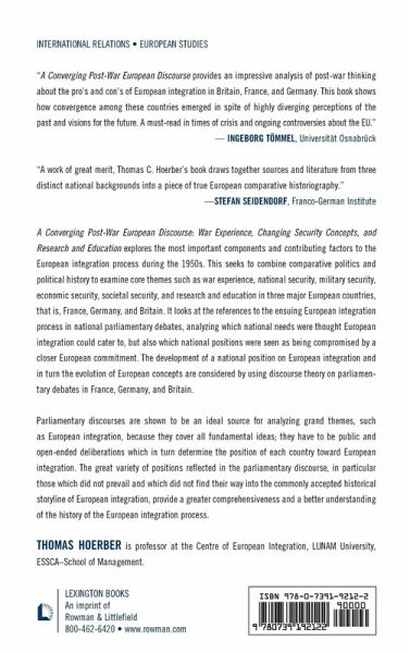 This book explores the most important components and contributing factors to the European integration process during the 1950s. It seeks to combine comparative politics and political history to examine core themes such as war experience, national security, military security, economic security, societal security, and research and education in three major European countries, i.e. France, Germany, and Britain. It analyses the references to the ensuing European integration process in national parliamentary debates, analyzing which national needs were thought European integration could cater to, but also which national positions were seen as being compromised by a closer European commitment. The development of a national position on European integration and in turn the evolution of European concepts are considered by using discourse theory on parliamentary debates in France, Germany, and Britain. Parliamentary discourses are shown to be an ideal source for analyzing grand themes, such as European integration, because they cover all fundamental ideas; they have to be public and open-ended deliberations which in turn determined the position of each country towards European integration. The great variety of positions reflected in the parliamentary discourse, in particular those which did not prevail and which did not find their way into the commonly accepted historical storyline of European integration, provide a greater comprehensiveness and a better understanding of the history of the European integration process.