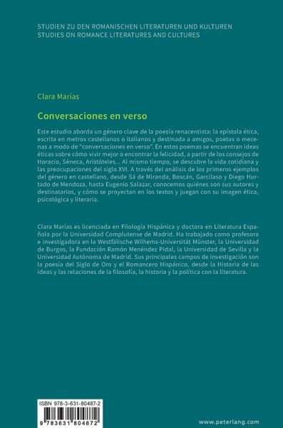 Este estudio aborda un género clave de la poesía renacentista: la epístola ética, escrita en metros castellanos o italianos y destinada a amigos, poetas o mecenas a modo de "conversaciones en verso". En estos poemas se encuentran ideas éticas sobre cómo vivir mejor o encontrar la felicidad, a partir de los consejos de Horacio, Séneca, Aristóteles... Al mismo tiempo, se descubre la vida cotidiana y las preocupaciones del siglo XVI. A través del análisis de los primeros ejemplos del género en castellano, desde Sá de Miranda, Boscán, Garcilaso y Diego Hurtado de Mendoza, hasta Eugenio Salazar, conocemos quiénes son sus autores y destinatarios, y cómo se proyectan en los textos y juegan con su imagen ética, psicológica y literaria.