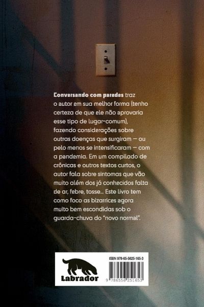 Conversando com paredes traz o autor em sua melhor forma (tenho certeza de que ele não aprovaria esse tipo de lugar-comum), fazendo considerações sobre outras doenças que surgiram - ou pelo menos se intensifificaram - com a pandemia. Em um compilado de crônicas e outros textos curtos, o autor fala sobre sintomas que vão muito além dos já conhecidos falta de ar, febre, tosse... Este livro tem como foco as bizarrices agora muito bem escondidas sob o guarda-chuva do novo normal.