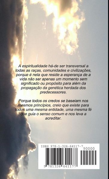 A espiritualidade há-de ser transversal a todas as raças, comunidades e civilizações, porque é nela que reside a esperança de a vida não ser apenas um momento sem significado ou propósito para além da propagação da genética herdada dos predecessores. Porque todos os credos se baseiam nos mesmos princípios, creio que existe para todos uma mesma entidade, uma mesma fé que guia o senso comum e nos leva a acreditar.