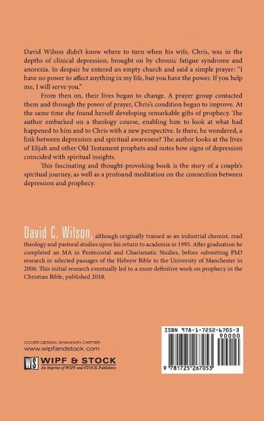 David Wilson didn't know where to turn when his wife, Chris, was in the depths of clinical depression, brought on by chronic fatigue syndrome and anorexia. In despair he entered an empty church and said a simple prayer: ""I have no power to affect anything in my life, but you have the power. If you help me, I will serve you."" From then on, their lives began to change. A prayer group contacted them and through the power of prayer, Chris's condition began to improve. At the same time she found herself developing remarkable gifts of prophecy. The author embarked on a theology course, enabling him to look at what had happened to him and to Chris with a new perspective. Is there, he wondered, a link between depression and spiritual awareness? The author looks at the lives of Elijah and other Old Testament prophets and notes how signs of depression coincided with spiritual insights. This fascinating and thought-provoking book is the story of a couple's spiritual journey, as well as a profound meditation on the connection between depression and prophecy.