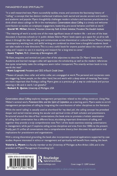 Conversations about Calling explores management perspectives of the calling construct. Using Max Weber's seminal work, The Protestant Ethic and the Spirit of Capitalism, as a starting point, Myers seeks to enrich management perspectives of calling by integrating the contributions of other disciplines to the literature on calling. While the word 'calling' is casually used as shorthand for 'my ideal job', the calling concept has provoked deeper and varied interest among the secular and spiritual circles of both scholars and practitioners. Structured around the idea of four conversations, the book aims to promote a holistic examination of calling. Each conversation has a different focus, elucidating important dimensions of calling, and together they provide a truly comprehensive view. Part I of the book examines existing conversations in management, while part II explores calling across disciplines and eras, from the 1500s to the present. Finally, part III unifies all conversations in a comprehensive theory, then discusses its application and implications for practitioners and organizations. With a strong theoretical grounding, the book also incorporates practical applications supported by case studies. Anyone interested in ethics or management and spirituality will benefit from reading this book. Please visit www.conversationsaboutcalling.com to rate the book and write a review.