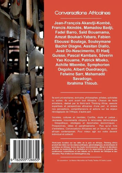 Jean-François Akandji-Kombé, Francis Akindès, Mamadou Badji, Fadel Barro, Saïd Bouamama, Amzat Boukari-Yabara, Fabien Eboussi Boulaga, Souleymane Bachir Diagne, Assitan Diallo, José Do-Nascimento, El Hadj Guissé, Pascal Kambale, Séverin Yao Kouame, Patrick Mbeko, Achille Mbembe, Symphorien Ongolo, Albert Ouedraogo, Felwine Sarr, Mahamadé Savadogo, Ibrahima Thioub. Ils sont universitaires, écrivains, philosophes, activistes ou autres. Ils sont, avant tout, Africains. Chacun de leurs entretiens, réalisés par le think-tank Thinking Africa, associe expertises et perspectives africaines d'une part, et éclaire nos perceptions, compréhensions et actions sur les enjeux névralgiques de l'Afrique, d'autre part. Sociétés, culture et identités; conflits, droits et justice; jeunesse, mouvements citoyens et renouveau démocratique; géopolitique, stratégies et diplomaties économiques; prospectives, idées et panafricanisme: Plus qu'un livre d'entretiens, Conversations Africaines est un forum du savoir africain contemporain. Pour mieux agir sur notre devenir individuel et collectif. Sous la direction de Dr Saïd Abass Ahamed et Esimba Ifonge.