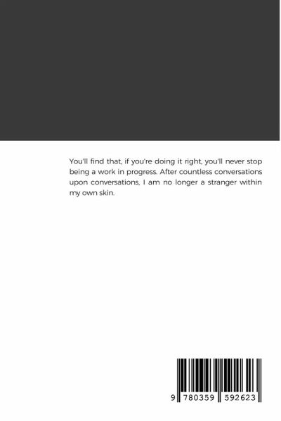 You'll find that, if you're doing it right, you never stop being a work in progress. After countless conversations on conversations, I am no longer a stranger within my own skin.