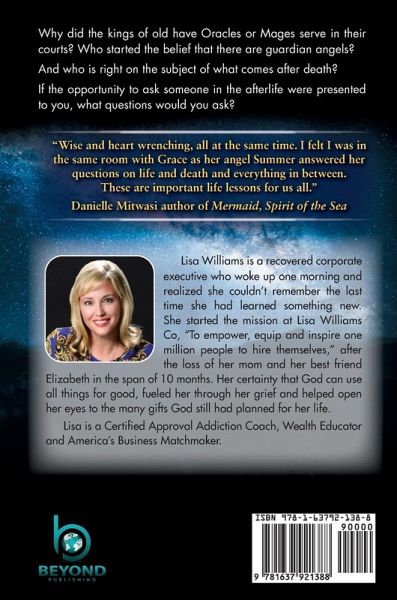 Why did the kings of old have Oracles or Mages serve in their courts? Who started the belief that there are guardian angels? And who is right on the subject of what comes after death? If the opportunity to ask someone in the afterlife were presented to you, what questions would you ask? "Wise and heart wrenching, all at the same time. I felt I was in the same room with Grace as her angel Summer answered her questions on life and death and everything in between. These are important life lessons for us all." Danielle Mitwasi author of Mermaid, Spirit of the Sea Lisa Williams is a recovered corporate executive who woke up one morning and realized she couldn't remember the last time she had learned something new. She started the mission at Lisa Williams Co, "To empower, equip and inspire one million people to hire themselves," after the loss of her mom and her best friend Elizabeth in the span of 10 months. Her certainty that God can use all things for good, fueled her through her grief and helped open her eyes to the many gifts God still had planned for her life. Lisa is a Certified Approval Addiction Coach, Wealth Educator and America's Business Matchmaker.