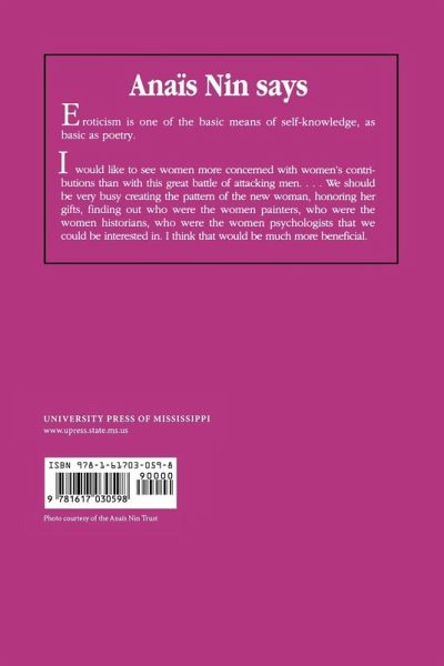 Anaïs Nin says: Eroticism is one of the basic means of self-knowledge, as basic as poetry. I would like to see women more concerned with women's contributions than with this great battle of attacking men. . . . We should be very busy creating the pattern of the new woman, honoring her gifts, finding out who were the women painters, who were the women historians, who were the women psychologists that we could be interested in. I think that would be much more beneficial.