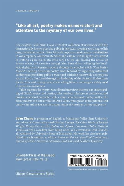 Conversations with Dana Gioia is the first collection of interviews with the internationally known poet and public intellectual, covering every stage of his busy, polymathic career. Dana Gioia (b. 1950) has made many contributions to contemporary American literature and culture, including but not limited to crafting a personal poetic style suited to the age; leading the revival of rhyme, meter, and narrative through New Formalism; walloping the "intellectual ghetto" of American poetry through his epochal article "Can Poetry Matter?"; helping American poetry move forward by organizing influential conferences; providing public service and initiating nationwide arts projects such as Poetry Out Loud through his leadership of the National Endowment for the Arts; and editing twenty best-selling literary anthologies widely used in American classrooms. Taken together, the twenty-two collected interviews increase our understanding of Gioia's poetry and poetics, offer aesthetic pleasure in themselves, and provide a personal encounter with a writer who has made poetry matter. The book presents the actual voice of Dana Gioia, who speaks of his personal and creative life and articulates his unique vision of American culture and poetry.
