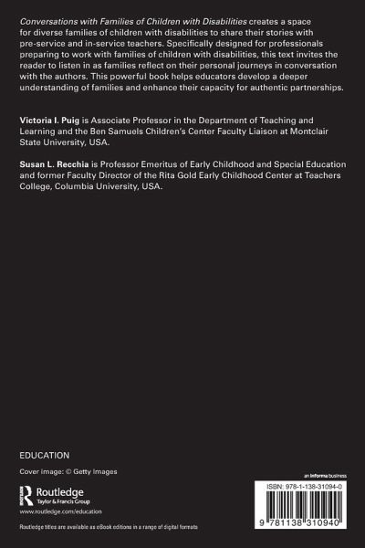 Conversations with Families of Children with Disabilities creates a space for diverse families of children with disabilities to share their stories with pre-service and in-service teachers. Specifically designed for professionals preparing to work with families of children with disabilities, this text invites the reader to listen in as families reflect on their personal journeys in conversation with the authors. This powerful book helps educators develop a deeper understanding of families and enhance their capacity for authentic partnerships.
