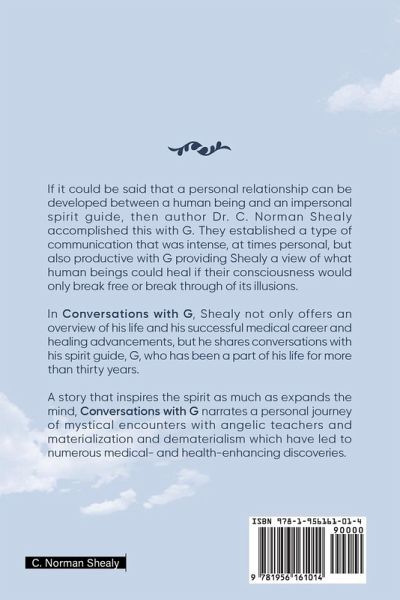 If it could be said that a personal relationship can be developed between a human being and an impersonal spirit guide, then author Dr. C. Norman Shealy accomplished this with G. They established a type of communication that was intense, at times personal, but also productive with G providing Shealy a view of what human beings could heal if their consciousness would only break free or break through of its illusions. In Conversations with G, Shealy not only offers an overview of his life and his successful medical career and healing advancements, but he shares conversations with his spirit guide, G, who has been a part of his life for more than thirty years. A story that inspires the spirit as much as expands the mind, Conversations with G narrates a personal journey of mystical encounters with angelic teachers and materialization and dematerialism which have led to numerous medical- and health-enhancing discoveries.