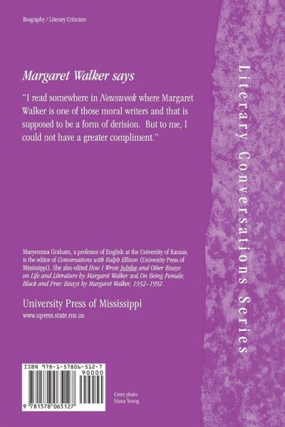 I read somewhere in Newsweek where Margaret Walker is one of those moral writers and that is supposed to be a form of derision. But to me, I could not have a greater compliment." Margaret Walker (1915-1998) began her writing career as a poet in the late 1930s. But she was cast into the limelight in 1966 when her novel Jubilee was published to wide critical and commercial acclaim. In interviews ranging from 1972 to 1996, Conversations with Margaret Walker captures Walker's voice as she discusses an incredibly wide range of interests. The same erudition, wit, and love of language on display in Jubilee comes through in conversations, as well as her sense of moral authority--imbued by a resonant Christian humanism--and her attention to historical detail. In a long 1972 conversation with fellow poet Nikki Giovanni, Walker argues about the tribulations and triumphs of motherhood, the presence of black women in literature, and race relations in American culture from 1900 to the present. With Marcia Greenlee in 1977, she talks extensively about her family's history and her love of botany. In several of the interviews, her friendship with Richard Wright rises to the forefront. Even in her interviews with Claudia Tate and John Griffin Jones, in which the interviewers try to direct the conversations toward the mechanics and thought processes behind Walker's writing, the talks often sweep into broader issues of African American culture, family history, and the past's influence on the present. This collection amply shows that Margaret Walker was a writer who considered her work to be deeply influenced by the culture around her. She viewed her writing as part of her larger life and not separate or distanced from her existence. Bracingly direct, witty, and oddly charming, the writer in Conversations with Margaret Walker is complicated, passionate, forceful, and piercingly intelligent. Maryemma Graham, a professor of English at the University of Kansas, is the co-editor of Conversations with Ralph Ellison (University Press of Mississippi). She also edited How I Wrote Jubilee and Other Essays on Life and Literature by Margaret Walker, and On Being Female, Black and Free: Essays by Margaret Walker, 1932¿1992.