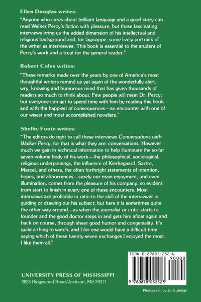 These collected interviews, like a visit with Percy at his home on the Bogue Falaya River, provide refreshing close-up encounters with one of Americäs most celebrated writers. These twenty-seven interviews cover a period of twenty-two years, from the time of the publication of Percy¿s first novel, The Moviegoer, in 1961, until 1983, when he was interviewed about his friendship with Thomas Merton. This volume is the second in the Literary Conversations series. These unabridged interviews, collected from a variety of sources, will give reading pleasure to general readers who wish to know Percy and his works more closely, and they will be of great use to Percy scholars.