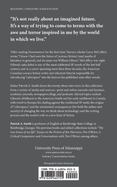 "After reading Neuromancer for the first time," literary scholar Larry McCaffery wrote, "I knew I had seen the future of [science fiction] (and maybe of literature in general), and its name was William Gibson." McCaffery was right. Gibson's 1984 debut is one of the most celebrated SF novels of the last half century, and in a career spanning more than three decades, the American Canadian science fiction writer and reluctant futurist responsible for introducing "cyberspace" into the lexicon has published nine other novels. Editor Patrick A. Smith draws the twenty-three interviews in this collection from a variety of media and sources--print and online journals and fanzines, academic journals, newspapers, blogs, and podcasts. Myriad topics include Gibson's childhood in the American South and his early adulthood in Canada, with travel in Europe; his chafing against the traditional SF mold, the origins of "cyberspace," and the unintended consequences (for both the author and society) of changing the way we think about technology; the writing process and the reader's role in a new kind of fiction. Gibson (b. 1948) takes on branding and fashion, celebrity culture, social networking, the post-9/11 world, future uses of technology, and the isolation and alienation engendered by new ways of solving old problems. The conversations also provide overviews of his novels, short fiction, and nonfiction. PATRICK A. SMITH, Havana, Florida, is professor of English at Bainbridge State College in Bainbridge, Georgia. His previous books and edited collections include "The true bones of my life": Essays on the Fiction of Jim Harrison; Tim O'Brien: A Critical Companion; and Conversations with Tim O'Brien (published by University Press of Mississippi), among others.