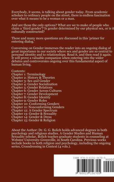 Conversing on Gender is, as its subtitle indicates, a primer for entering the broad conversation on gender that can be found both inside and outside of academic circles. The book considers the relation of gender to sex and sexuality, reviews prominent theories of gender, and covers basic gender issues.