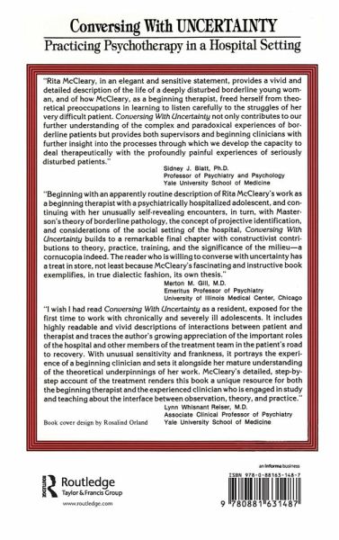 Conversing with Uncertainty is a unique chronicle of why therapists must use theory while resisting the allure of theory, maintaining a double vision that allows them to appropriate theory only to break it open to enlarge the interactive and interpretive possibilities of therapy. But McCleary offers far more than a vivid experiential rendering of this insight. She argues persuasively, here in conversation with the writings of Irwin Hoffman and Lawrence Friedman, that a narrative case study - such as her case study of Kay - offers a unique window to comprehending the type of reflection that culminates in psychotherapeutic knowing. It follows, for McCleary, that case narratives are especially relevant to psychotherapeutic training, and by implication, to the way in which therapists acquire expertise. Framed by a foreword by Stephen Mitchell and an afterword by Glen Gabbard, Conversing with Uncertainty is the premier volume of the Relational Perspectives Book Series. It also introduces a gifted writer of rare therapeutic sensibility. For it is McCleary's achievement, finally, not merely to convey with arresting candor the stress and uncertainty of clinical training, but to use her encounter with Kay to probe with fresh insight perennial questions about the narrative structure of therapeutic knowledge, the experiential foundations of theory choice, and the use and abuse of theory in clinical practice.