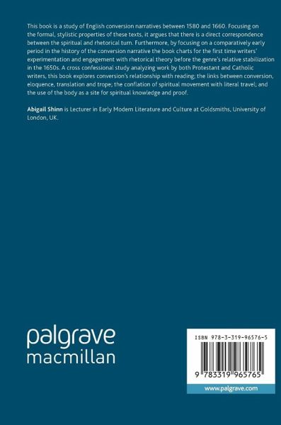 This book is a study of English conversion narratives between 1580 and 1660. Focusing on the formal, stylistic properties of these texts, it argues that there is a direct correspondence between the spiritual and rhetorical turn. Furthermore, by focusing on a comparatively early period in the history of the conversion narrative the book charts for the first time writers' experimentation and engagement with rhetorical theory before the genre's relative stabilization in the 1650s. A cross confessional study analyzing work by both Protestant and Catholic writers, this book explores conversion's relationship with reading; the links between conversion, eloquence, translation and trope; the conflation of spiritual movement with literal travel; and the use of the body as a site for spiritual knowledge and proof.