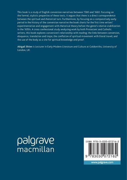 This book is a study of English conversion narratives between 1580 and 1660. Focusing on the formal, stylistic properties of these texts, it argues that there is a direct correspondence between the spiritual and rhetorical turn. Furthermore, by focusing on a comparatively early period in the history of the conversion narrative the book charts for the first time writers' experimentation and engagement with rhetorical theory before the genre's relative stabilization in the 1650s. A cross confessional study analyzing work by both Protestant and Catholic writers, this book explores conversion's relationship with reading; the links between conversion, eloquence, translation and trope; the conflation of spiritual movement with literal travel; and the use of the body as a site for spiritual knowledge and proof.